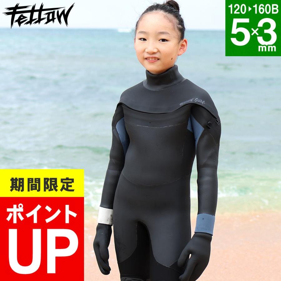 値下げしました!!!子供用ウエット セミドライ 5mm×3mm 最高級 FELLOW セミドライ ウェットスーツ キッズ 5×3mm ロングチェストジップ