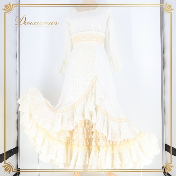 - ダンス・バレエ > フラメンコ > フラメンコ アイボリー レース トップス ドレス スカート セット 衣装 白 フラメンコ 衣装 ツーピース セットアップ 白 アイボリー ボランテ