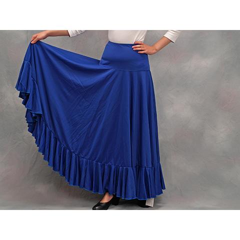 - ダンス・バレエ > フラメンコ > ファルダ ブルーペイズリー ストレッチ 青フリル フラメンコ レッスン スカート フラメンコスカート フラメンコファルダ フラメンコ衣装 練習用 青